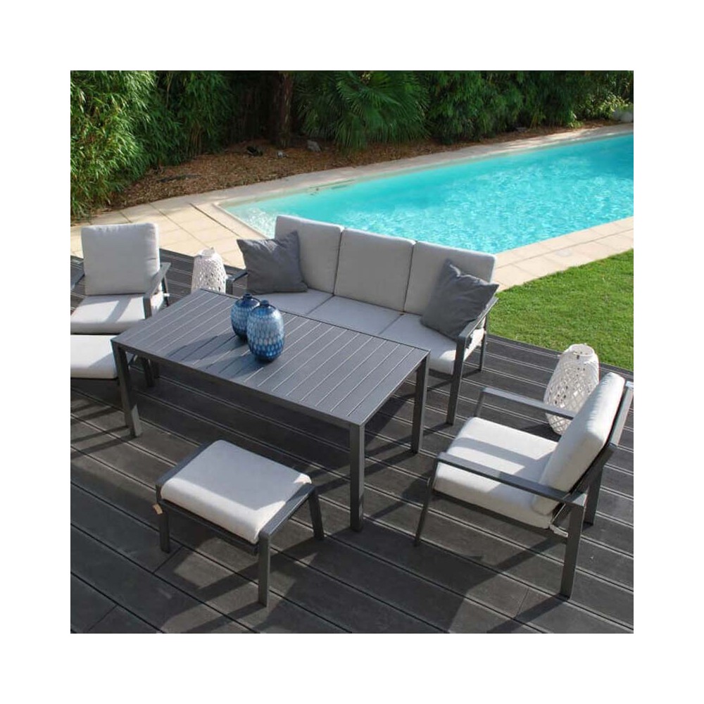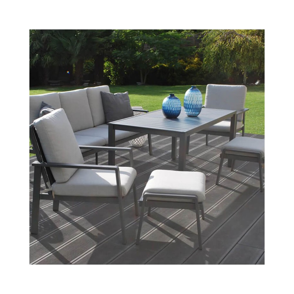 Le salon de jardin en aluminium 7 places - Atlantico, vous offre l’espace et le confort nécessaire pour organiser vos repas entre amis ou en famille. Idéal sur une terrasse ou dans un jardin, il permet de créer un espace de détente et de repas convivial.