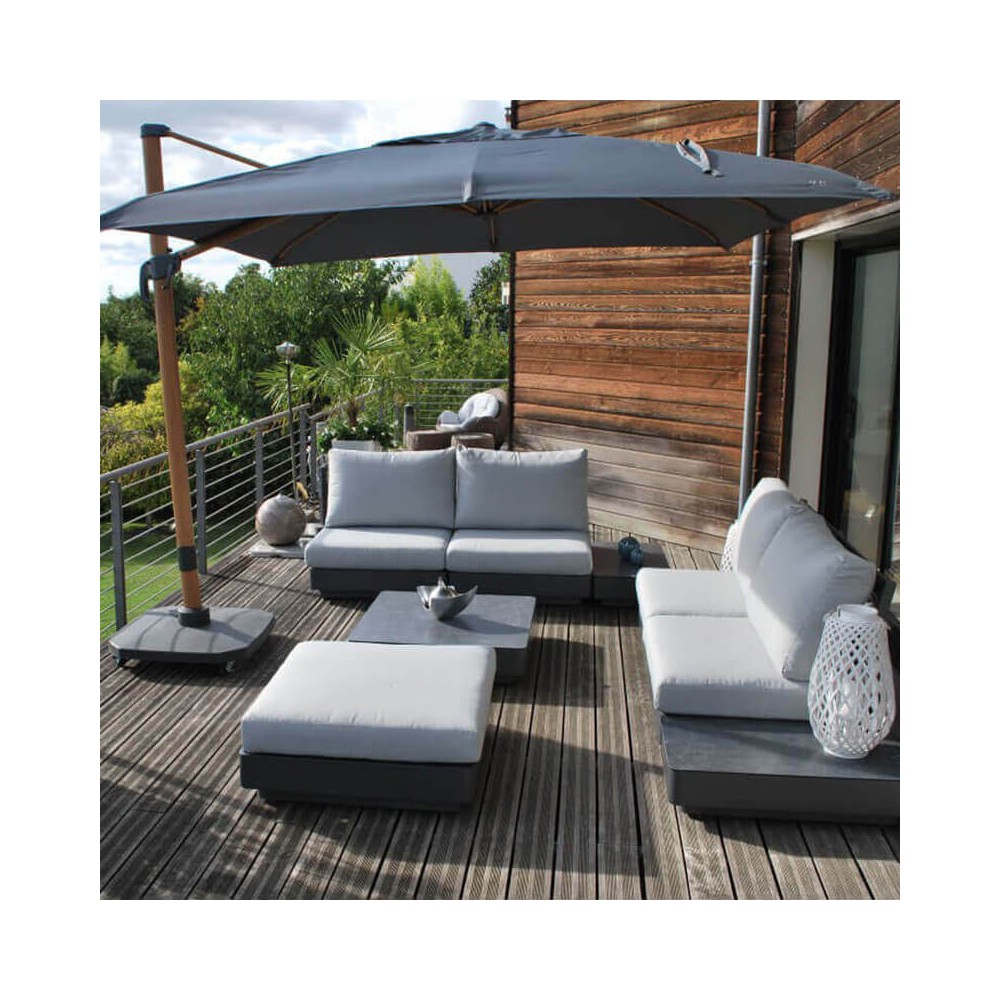 Profitez des beaux jours tout en vous protégeant du soleil grâce au parasol déporté 3x3. Son aspect moderne et design saura s'accorder dans votre jardin, sur votre terrasse ou au bord de votre piscine.