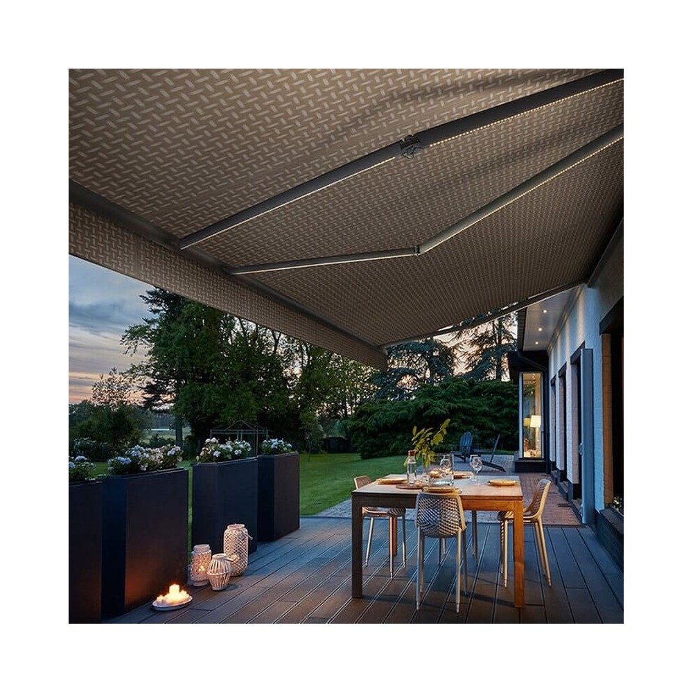 En plus d'une excellente tenue dans le temps et un entretien facile, nos toiles de store vous offrent un large choix de motifs et de coloris. Assemblage de la toile de store par thermocollage (soudure haute fréquence). Nos toiles de store protègent efficacement des UV ainsi que de la chaleur. Grâce à une traitement unique de la toile, ces tissus sont résistants à l'eau.