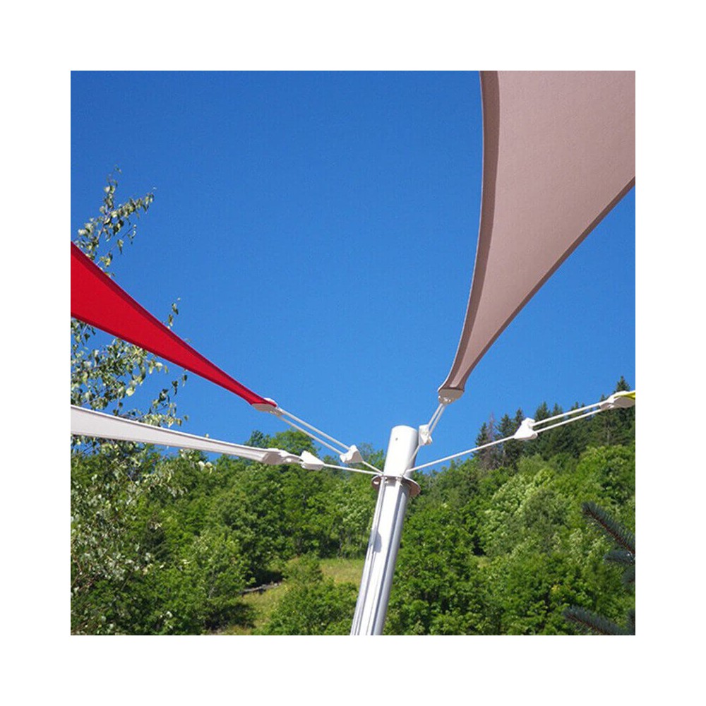 Mât en aluminum anodisé et ancrage pour voile d'ombrage EASY SAIL : Afin de faciliter leur installation, les voiles d'ombrage EASY SAIL peuvent être fixées sur une façade de maison, attachées dans un arbre, sur une poutre. Elles peuvent également se fixer sur le mât spécifiquement conçu pour les voiles EASY SAIL .